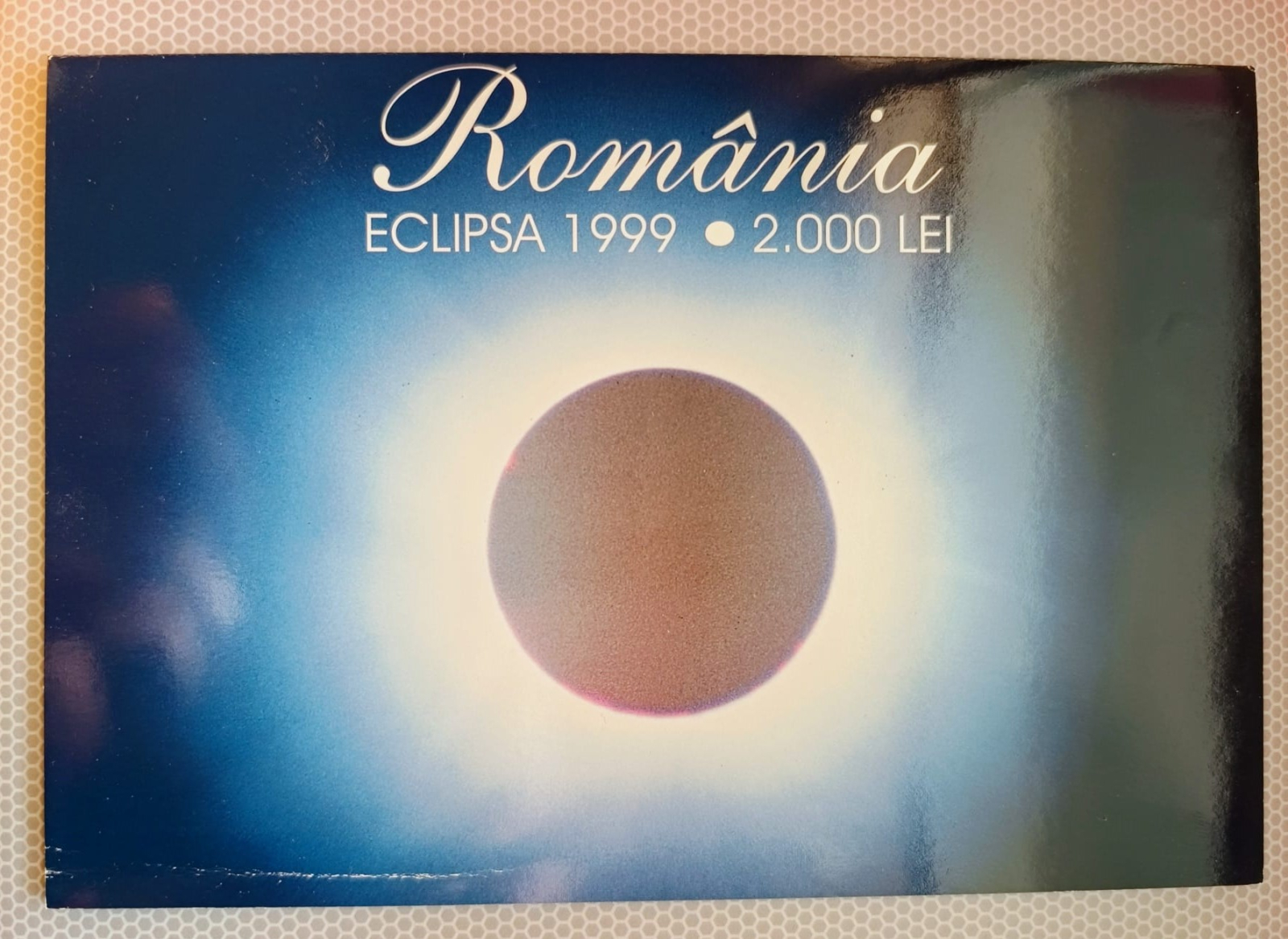 Bancnota 2000 lei eclipsa an 1999 seria 001A UNC ( necirculata ) in folder BNR . Folder-ul este putin indoit . Fotografia cu seria corespunde produsului vandut .