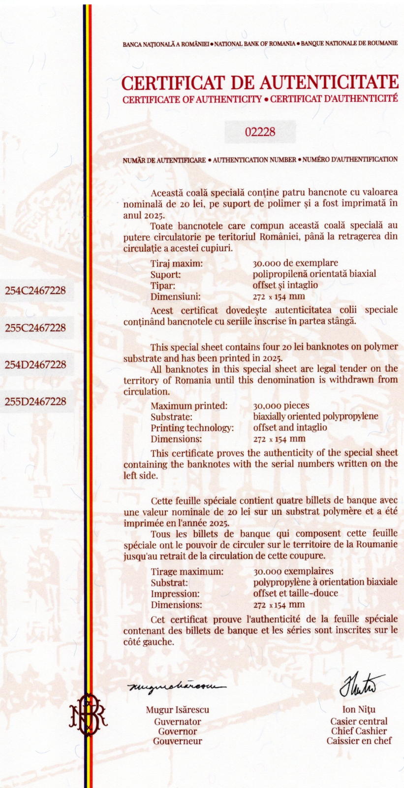 COALA DE 4 BANCNOTE DE 20 LEI ECATERINA TEODOROIU .