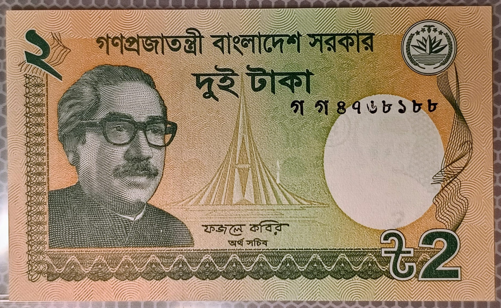Bancnota 2 Taka Bangladesh UNC ( necirculata ) 2013 . In folie de protectie cristal clear