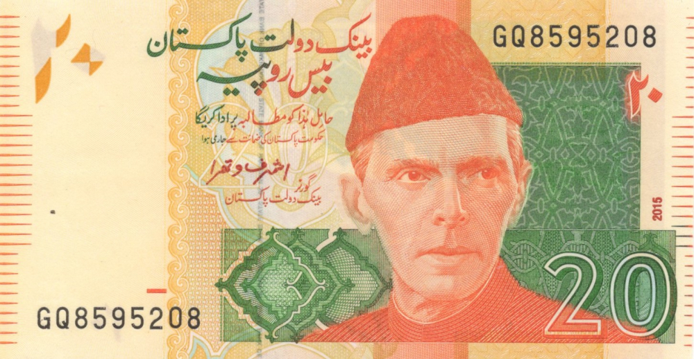 BANCNOTA 20 RUPII PAKISTAN 2015 UNC (necirculata). In folie de protectie cristal clear marca Lindner . Se vinde piesa din scan.