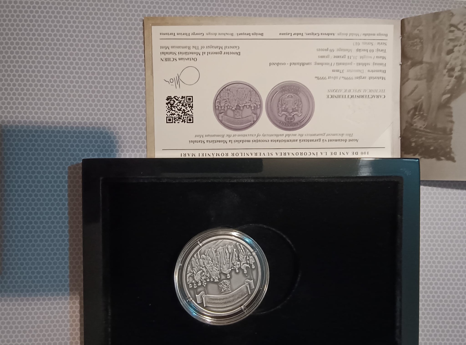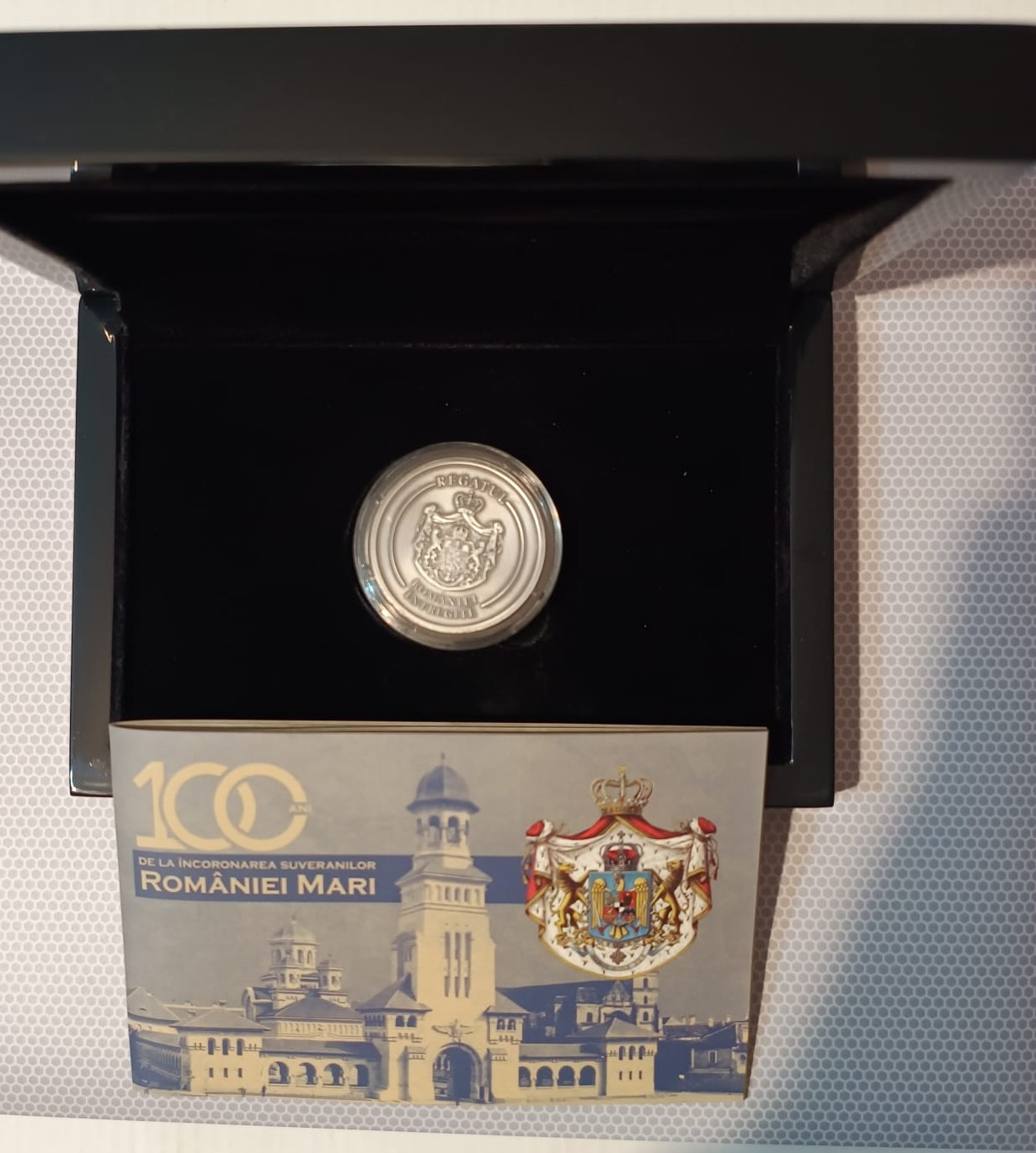 Medalia de argint 100 de ani de la incoronarea regilor Romaniei Mari . Certificat nr 13 din 60
