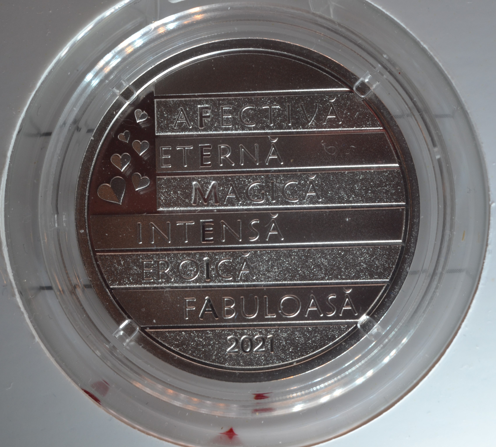 Medalia de argint 999/1000 Ziua femeii 2021 in coperta de carton emisa in 2021 de Monetaria Statului.