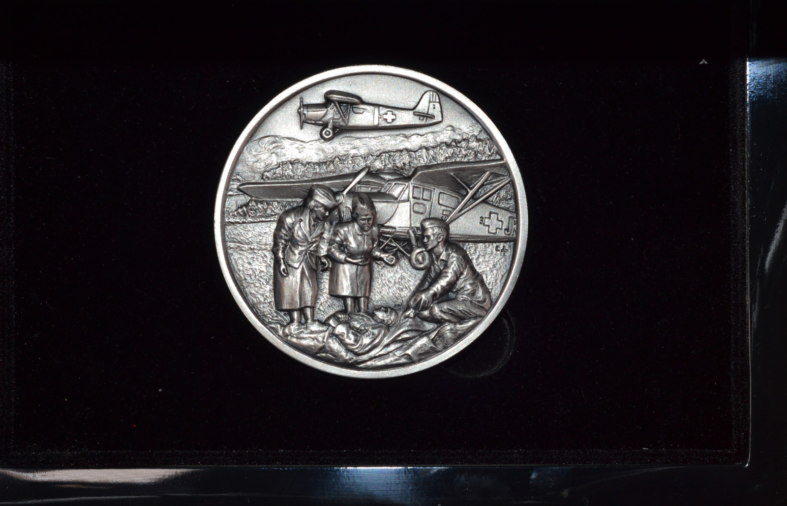 Setul contine : medalia, brosura de prezentare impreuna cu certificatul de autentificare nr 46 si cutie de prezentare din lemn.