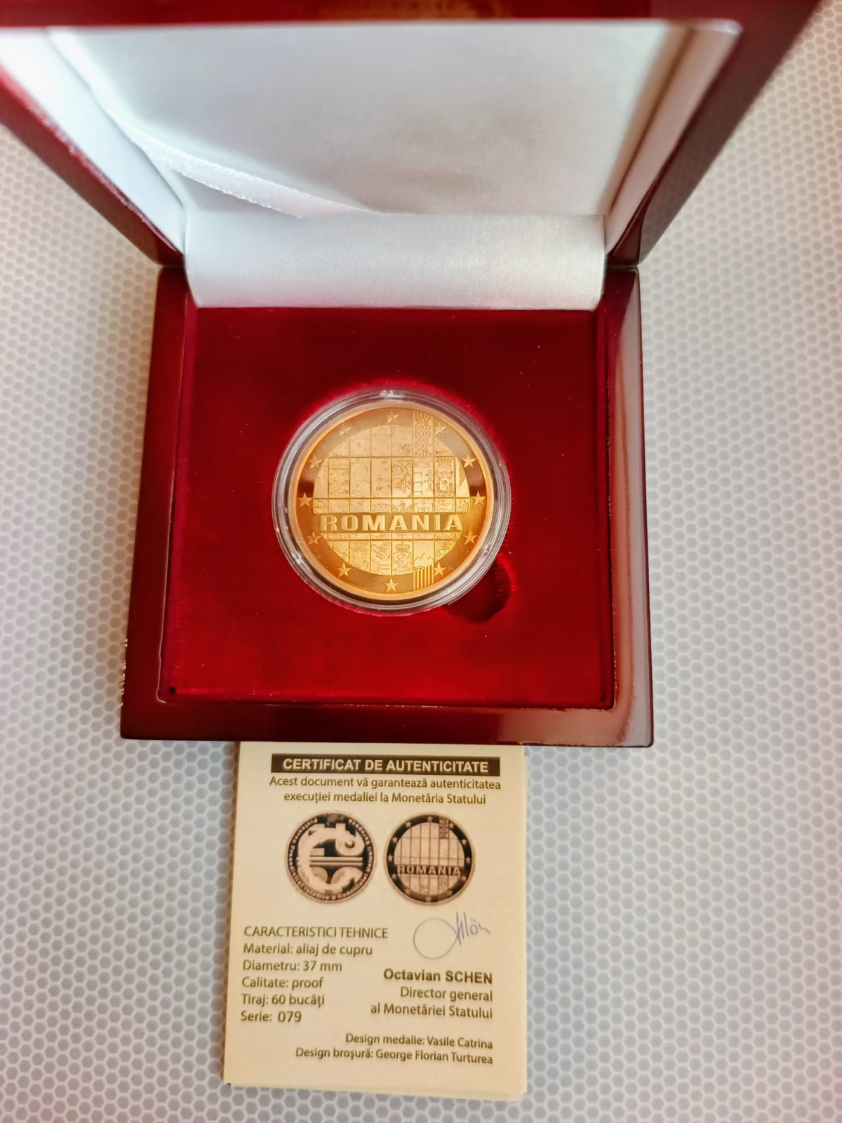 Setul contine medalia de alama , cutia de prezentare si certificatul de autenticitate numarul 79.