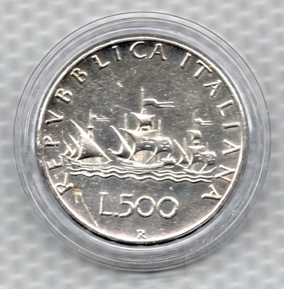 Moneda de argint 500 lire Italia 1966 in capsula de protectie din acril transparent. Se vinde moneda din foto.
