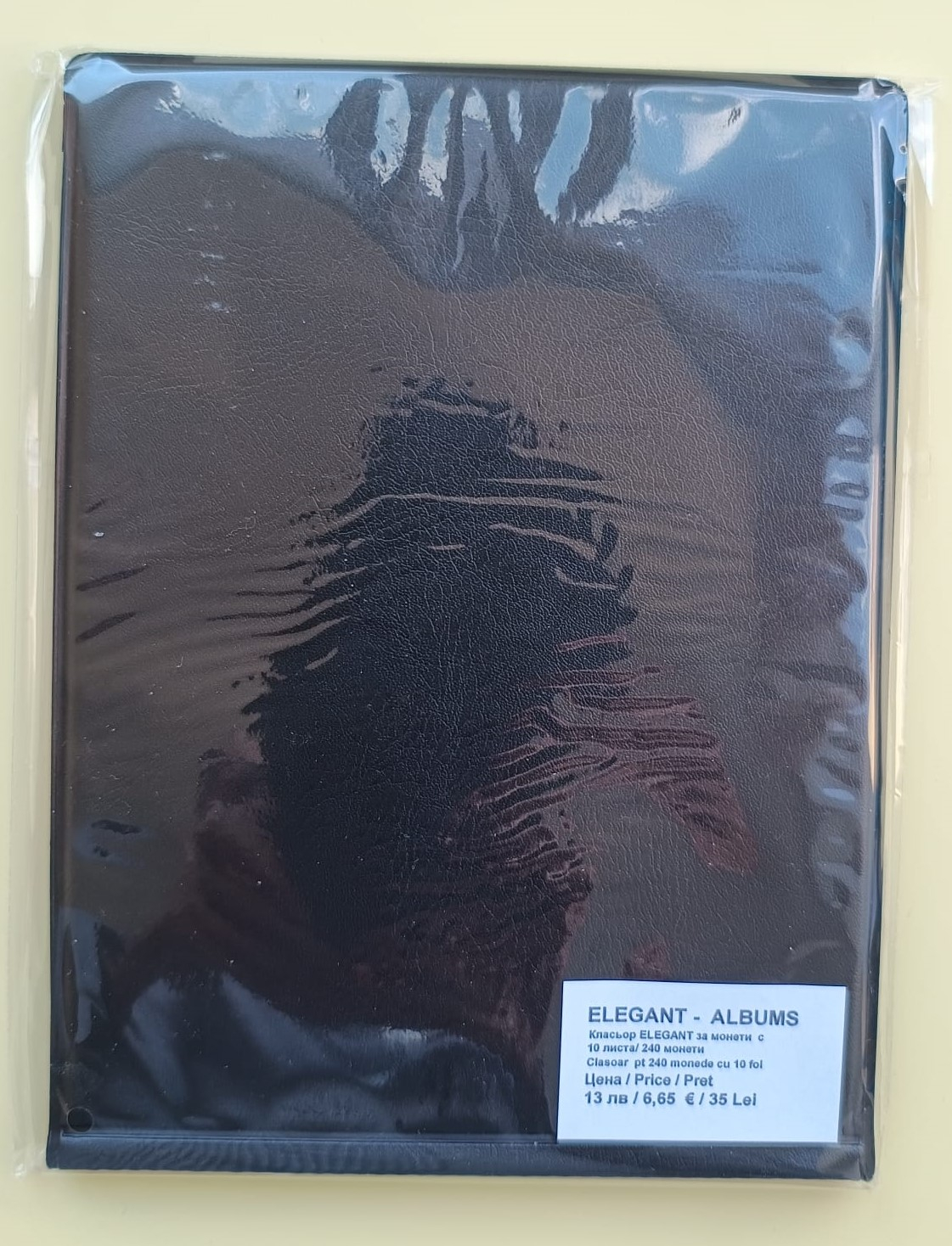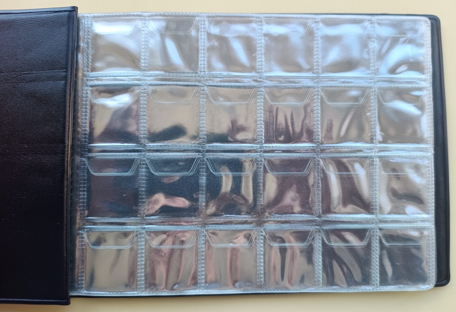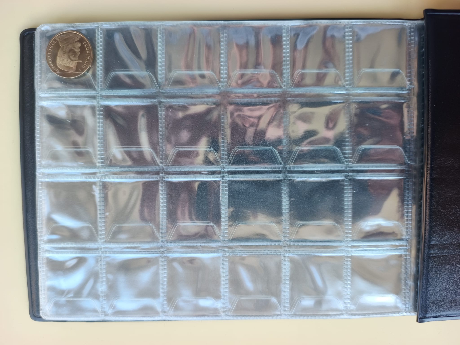 Album de calitate buna, pentru monede mai mici de 25 mm . 240 locasuri in 10 foi ( 6x4 ).
